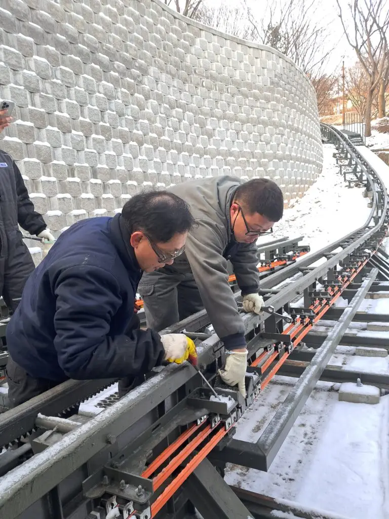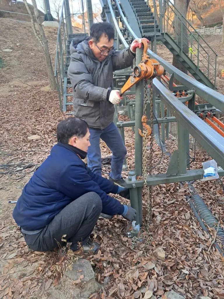 여러분의 안전을 위해 정기/부정기적으로 모노레일 차량과 선로를 점검과 보수하고 있습니다. 매주 첫번째와 세번째 월요일에 휴장을 하고 점검을 하며 3개월마다 정기적인 유지 보수를 하고 있습니다. 유지 보수를 위한 임시/정기 휴무일은 전화 안내와 홈페이지 공지사항을 통해 미리 알려드리고 있습니다. 일정에 차질 없도록 미리 참고하시기 바랍니다.
